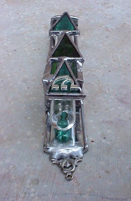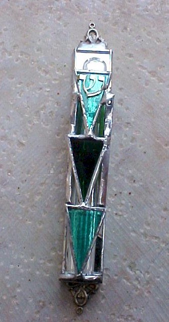 beautiful stained glass mezuzah is handmade by Chaim