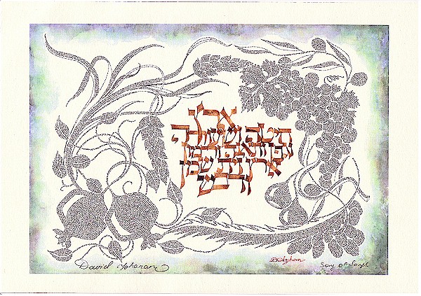 He has drawn hundreds of paintings in charcoal, aquatint, acrylic, oil and watercolors. His painting techniques include illuminations, microcaligraphy, papercuts and vitrage. The interweaving of colors and varied shapes give his paintings depth and exhibit remarkable creativity. In addition, the artist has shown great interior design talents; he designs aronot kodesh (Torah scroll arks) and Judaica art ornaments. Mr. Yohanan has recently put out a series of original and unique Calligraphy paintings.