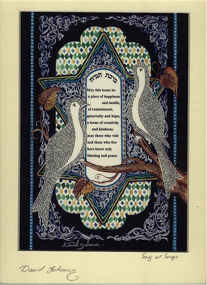is the traditional Jewish blessing over the home. The two doves are made from
