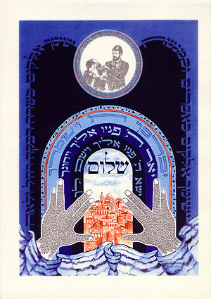 His dual talents are evidenced in the remarkable combinations of writing and decorations on klaf (holy parchments), incorporating symbols and quotations from the Bible, and Jerusalem scapes. Examples of his artistic creations include a Megilat Esther (scroll of the Book of Esther), ktubot (wedding agreements), depictions of pitum haktoret (the Temple incense mixture) and more.