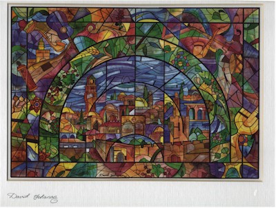 by the artist, was created and printed in Jerusalem. The painting is a stained-glass