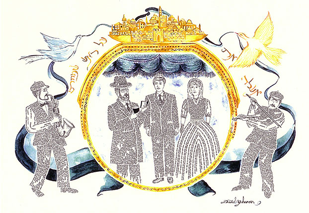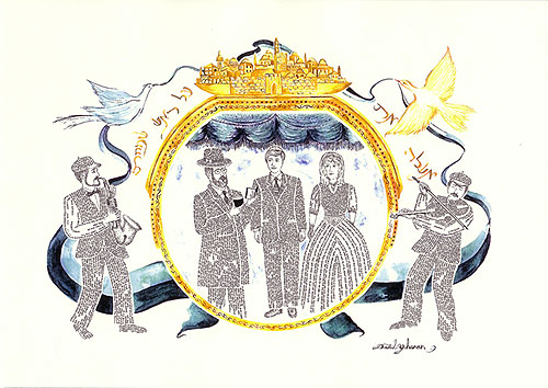 and printed in Jerusalem. The Hebrew above the chupa (wedding